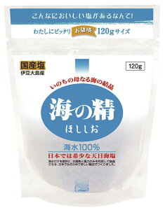「海の晶 ほししお」がお値頃サイズで「海の精 ほししお」スタンドパックとなりました。 原材料:海水(伊豆大島産) 内容量:120g 数量:12パック 販売者:オーサワジャパン