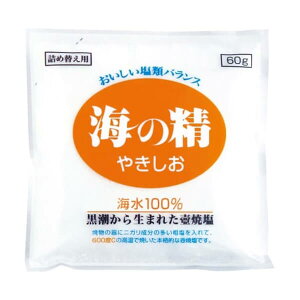 海の精 やきしお 60g 詰替え用 6袋 さらさらと使いやすい伝統海塩。「海の精あらしお」を600度C以上の高温で焼き上げた焼塩です。 発売元:海の精 内容量:60g×6袋 マイルドな味わい。食卓塩や...