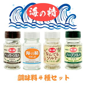海の精 調味料 4種セット は、伊豆大島の伝統海塩に厳選素材をブレンドした自然派調味料! ペッパーソルト・ハーブソルト・なんでもソルト・やきしおの4種類で、どんな料理もワンランクアップ! 化学調味料・添加物不使用...