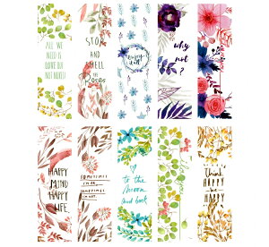 ◆平日16時迄のお支払いは当日出荷(土日祝を除く) オシャレな読書家様にオススメ! 海外 英短句とフラワーのデザインがとてもおしゃれな30枚入りしおりセットです。 表は絵柄、裏面は白無地となっており、読書の感想や好きな言葉を書い