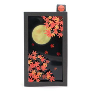 繊細なカット加工が施された紅葉ごしに大きな満月が見える、情緒あふれるカードです。 ボタンを押すと、秋の虫の鳴き声が流れ、月と背景がやさしく光ります。 立てて飾れるので、秋のインテリアとしてもお楽しみいただけます。 カード