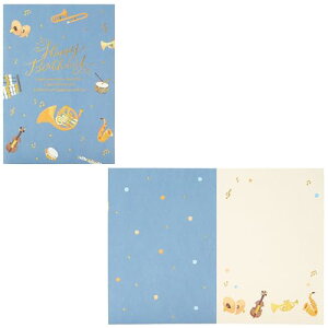 さまざまな楽器がシンプルに描かれた洗練されたデザインが印象的です 全面に金箔と、絵柄が盛り上がる加工が施され、華やかな仕上がりです 性別を問わず贈りやすいカードです。ストライプのデザイン封筒付き 特に吹奏楽部・軽音楽部・