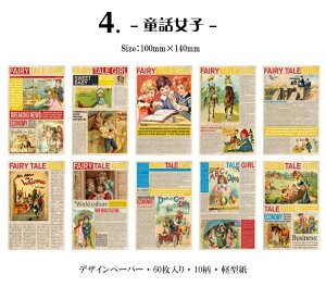 ◆平日16時迄のお支払いは当日出荷(土日祝を除く)。 海外のアンティーク調デザインペーパー! 森の妖精や童話人物と英語、 組み合わせたレトロ 風なデザインが素敵! 落ち着いたブラウン系の色合い、たっぷり60枚入り 内 容:たっぷり60