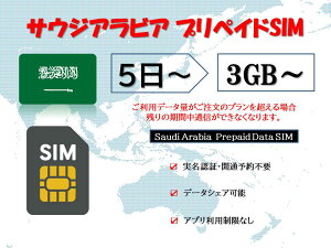【商品特徴】 (1)対応地域:サウジアラビア (2)データプラン:1GB/日、2GB/日、3GB/日 (3)ご利用日数:1日、3日、5日、7日 (4)日本のアプリがそのまま現地で利用!! (5)事前開通予約不要!! (6)パスポートな...