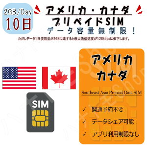 【有効期限】商品注文してから90日【商品特徴】 対応国:アメリカ/カナダ (1)アメリカ/カナダデータ通信SIM (2)10日プラン、データ容量2GB/日 (3)スマホにSIMを装着して、即開通! (4)出発前に日本で開通可能!安心!...