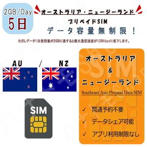 【有効期限】商品注文してから90日【商品特徴】 オーストラリア/ニュージーランド (1)オーストラリア/ニュージーランドデータ通信SIM (2)5日プラン、データ容量2GB/日 (3)スマホにSIMを装着して、即開通! (4)出発前に...