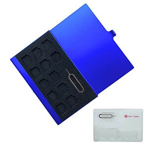 NanoSIMカード収納用アルミケース 12枚収納 取り出し リリースピン 紛失防止 持ち運び ケース 出張 海外旅行 付属 PVC SIMカ収納バッグ (青い) NanoSIMカード,SIM取り出しピンの持ち運び用ホルダーケース 最...