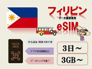 【商品特徴】 (1)対応地域:フィリピン (2)データプラン:3GB、5GB、10GB、30GB (3)ご利用日数:3日、5日、7日、10日、15日,、30日 (4)データ制限:ご利用データ量がご注文のプランを超える場合、残りの期間中...