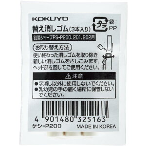 スタイル:替消しゴム/白◆商品名:コクヨ 鉛筆シャープ TypeS用 替え消しゴム 白3本 ケシ-P200【カラー】 白【サイズ】 φ7mm×23mm【入り数】 3本【適応品番 】 PS-P200・201...
