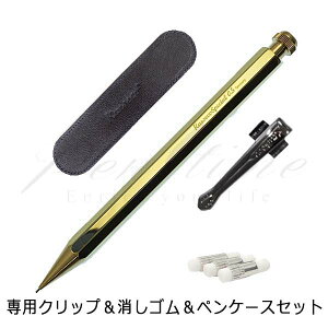 不動の人気を誇るカヴェコペンシルスペシャルPS−05ブラスと専用クリップ・予備の消しゴム・ペンケースのセット。