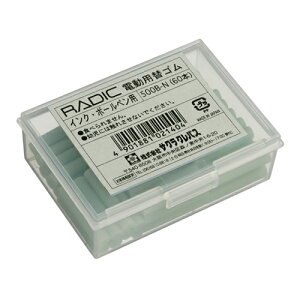 使いやすくなった電動字消し器●乾電池式アダプター式共通です。【用途】インク・ボールペン用【仕様】砂ゴムタイプ【特長】紙面上のボールペンインクを消す【単品サイズ】Φ4.6×20mm/本【入数】60本入り...