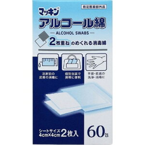 2枚重ねのめくれる消毒綿です。注射前の皮膚の消毒、手指・皮膚の洗浄・消毒に。シートサイズ4cm×4cm・2枚。60包入。医薬部外品。 ◆使用方法 1.切り口から封を開けます。 2.消毒綿を取り出します。...