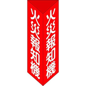 ●広範囲からの視認が可能な、消火器の設置場所を示す三角柱タイプの標識です。●当該情報の明示に。●表示内容:火災報知機●取付仕様:両面テープ●縦(mm):240●横(mm):80●板の厚さ(mm):1●二面表示●表印刷●硬質塩化ビニール