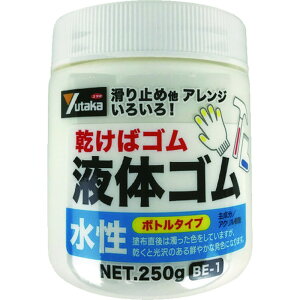 【特長】■乾けばゴムになります。■水性のため、水でうすめたり、色と色を混ぜて他色を作る事が出来ます。【用途】■すべり止め、図画工作などに。【仕様】■色:白■タイプ:ビン■容量(g):250■使用温度範囲(℃):5〜70■水性【材質