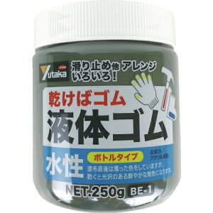《メーカー》(株)ユタカメイク《品番》BE-2《特長》●乾けばゴムになります。●水性の為水でうすめたり、色と色を混ぜて他色を作る事ができます。《用途》●スベリ止め、図画工作、微震動の吸収用などに。《仕様》●色:黒●容量(L):70