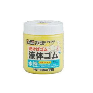 《メーカー》(株)ユタカメイク《品番》BE-1《特長》●乾けばゴムになります。●水性のため、水でうすめたり、色と色を混ぜて他色を作る事が出来ます。《用途》●すべり止め、図画工作などに。《仕様》●色:黄●タイプ:ビン●容量(g):250