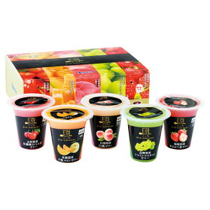 国産果汁を使用。それぞれ北海道産夕張メロン、長野県産シャインマスカット、山梨県産白桃、福岡県産あまおう苺、山形県産佐藤錦さくらんぼの果汁を使用した、ジューシーで香り高いゼリーに仕上げています。 ■箱種類:化粧箱 ■箱サイズ:約165×...