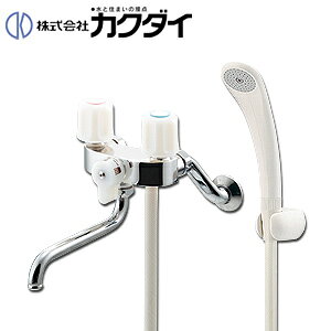 【規格・特徴】 ・シャワーホース接続部ネジG1/2 ・一時止水 ・逆止弁 ・ほとんどのメーカーのシャワーフックにガタつくことなく取付できるシャワーホース付き ・一般地仕様 2019 カクダイ 2ハンドル