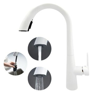 フレキシブルなプルダウンデザイン:蛇口は60cmまで自由に引き出し、より広いスペース掃除でき、シングルとダブルシンクの両方にも適用。 2つの吐水モード::ABSノズルには二つのモード(シャワーと泡)があり、ボタンを押すだけで、吐水モー