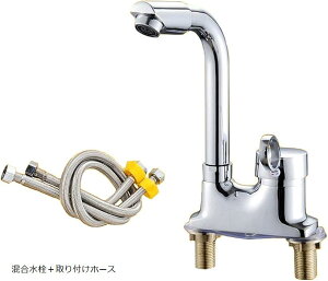 kxn92商品名ツーホール式 洗面用 シングルレバー 混合水栓 手洗いボウル用 360° クルクル回転 立水栓 洗面台 蛇口 SK19 混合水栓+取り付けホースブランドLife System・蛇口の根元と先端がクルクル回...