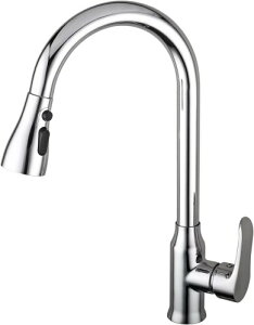グースネックタイプのシャワー水栓。ヘッドがコンパクトなので、軽々引き出せてシンク洗いもラクラクです。