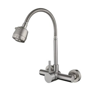 【洗練デザイン】バルブコア素材:セラミックレバーバルブ。本体素材:ステンレス。吐水口素材:高級ABS樹脂。洗練された多用途の壁付水栓、バス/洗面所/キッチンに対応。シルバーの色は空間にアンティーク調を飾れる。キッチンシンク