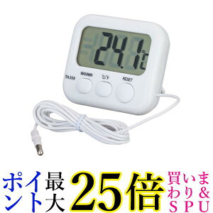 【商品説明】 外部センサー付きのデジタル温度計。 温度のみ表示のシンプル設計。 コンパクトな本体ながら、大きめの液晶画面で数値が見やすいです。 【商品仕様】 カラー ホワイト ※商品改良の為、デザインが異なる場合があります。