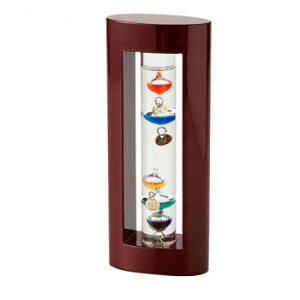 ガリレオ・ガリレイが発見した、液体の比重が温度によって変化する原理を使って作られた温度計です。ガラス球が温度によって上下します。インテリアとして、置くだけでも目を楽しませてくれる温度計です。※直射日光が当たる場所には
