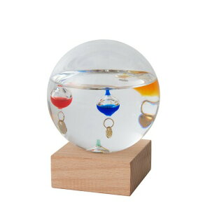 ガリレオ・ガリレイが発見した、液体の比重が温度によって変化する原理を使って作られた温度計です。ガラス球が温度によって上下します。インテリアとして、置くだけでも目を楽しませてくれる温度計です。