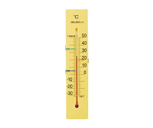 佐藤計量器の大可が寒暖計ミルノは、樹脂製の大型寒暖計です。全長は40cmで、-40〜50℃までを2℃目盛刻みで表示します。シンプルな寒暖計です。パステルグリーン、パステルイエロー、ホワイトの3種がございますが...