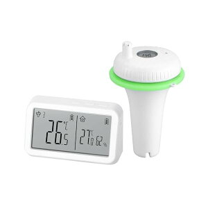 【高精度センサー搭載】ワイヤレス浮遊型プール温度計プラスマイナス0.1°Cの高精度測定、屋内受信機範囲0~50°C、屋外センサー範囲-40~70°C、30秒ごとに温度更新 【LCDデジタル表示】見やすい液晶画面、12/24時間表示対応...