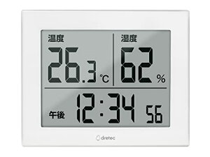 ◆商品名:ドリテック(dretec) 大画面温湿度計 ハキミエ デジタル 温度計 湿度計 大型 インフルエンザ 熱中症 対策 スタンド 壁掛け ホワイト【温度/湿度/時計表示】大きな画面に温度と湿度を...