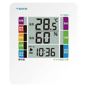 測定・計測用品 環境計測機器 温度計・湿度計 ●熱中症とインフルエンダ指標が、インジケーターで表示されて、すぐ見てわかります。●表示が見やすい3段階表示(温度、湿度、時計)+熱中症(5レベル)、インフルエンザ(3レベル)警戒表示します...