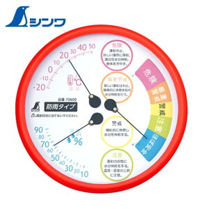 シンワ測定 70600 温湿度計 F−3L2 熱中症注意 丸型 15cm レッド 防雨タイプ