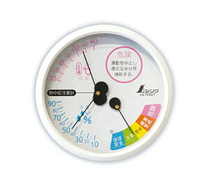 商品詳細壁掛けタイプ●熱中症の注意レベルをWBGT値と「注意」「警戒」「厳重警戒」「危険」の4段階で表示する温・湿度計●電池がいらないアナログ式●故障の原因となるボールなどの衝撃から製品本体を守る防球カバーをオプションとし