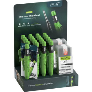 特長 ●建築用シャープペンシルと深穴インクマーカーがセットで店舗に陳列できます。 ●組み立て不要ですぐに陳列できます。 用途 ●木材(ウェット・ドライ)、鉄、樹脂、コンクリート、タイルなどへの線引きやマーキングに。 <