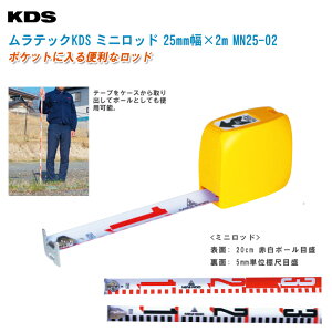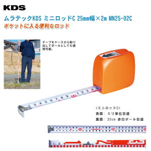 商品名ムラテックKDS ミニロッドMN25-02仕様目盛表面20cm 赤白ポール目盛裏面5mm単位標尺目盛テープ25mm幅×2m厚さ0.36mm包装サイズ71×73×35mm重量111g特長■ 携帯に便利なポケット型標尺。■ 反射しに...