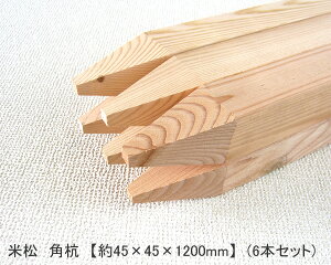 測量、造園やガーデニングにもお使いいただけます。販売サイズ 約45×45×1000mm (6本/1セット単位での販売となります。) (寸法は多少前後致します。)樹種 ●米松 木質はやや軽軟なものとやや重硬なものがあり、樹脂成分により塗...