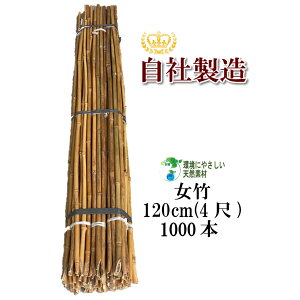 サイズ:120cm(4尺)×1000本梱包 この竹はベトナム産で、SDGsの一環として弊社が現地に設立した竹加工工場で生産しております。 女竹は、しなやかで粘り強く丈夫な竹です。 土に挿しやすいよう先端を斜めにカットしています。 測量の際、