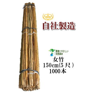 サイズ:150cm(5尺)×1000本梱包 この竹はベトナム産で、SDGsの一環として弊社が現地に設立した竹加工工場で生産しております。 女竹は、しなやかで粘り強く丈夫な竹です。 土に挿しやすいよう先端を斜めにカットしています。 測量の際、
