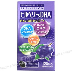 商品名 プレビジョン ビルベリー&DHA 120粒 内容量 61g(515mg×120粒)×3 商品説明 ■特徴●明るい毎日をサポート! ●ビルベリー、DHA含有精製魚油、ルテイン(マリーゴールド由来)を含有。 ●パソコンや読書、車の...