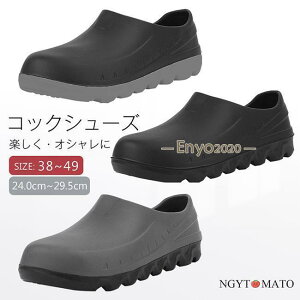 履きやすい男女兼用コックシューズスリッポンタイプで脱ぎ履きが簡単。穴が開いてないデザインと深めのヒールカップで足を完全に包み込み、キッチンでこぼした液体が浸透することを防ぐ。水、油などで濡れた床でも、摩擦力の高い靴裏