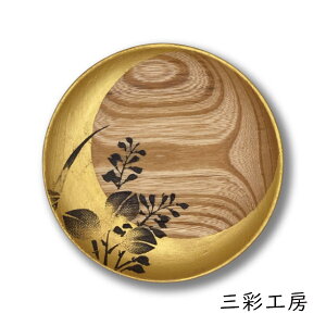 ▲「三彩工房」の商品一覧はこちら ●大皿 シリーズ "京友禅のデザインを何かに活かしたい" 初めて作成したのがこちらの大皿シリーズ 床の間や玄関などに飾っていただく商品です。Φ27.5cmの国産の栓の木を使用しています。 京友禅の振袖や