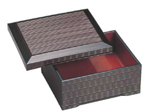 越前漆器の伝統の職人技と、現代的な素材のコラボレーションで見た目は美しく、取り扱い扱いしやすく、かつ安価なのが特徴です。合成樹脂製で、木製品よりも軽く、乾燥による反りや破損が起きにくい。また木製品と異なり冷蔵庫に長時