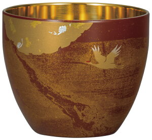 しっくりと手になじみ、飲みやすい形状のぐい呑みで、日本酒のお供におすすめです。上部に施された箔と、アクセントとなる鶴、そして全体に施された金粉のきらめきが美しく、贅沢な時間を演出してくれます。カラーは全2種類で...