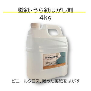 ビニールクロス裏紙剥離剤「ピーリングリキッド」用途壁紙(ビニールクロス・紙クロス等)の残った裏紙を剥がす剥離剤内容量4kg施工可能面積約20平米(200g/平米)。施工方法・薄めず原液のまま使用する。