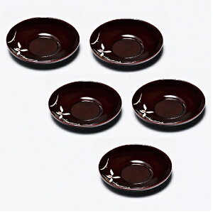 ■サイズ:φ12.9×2.1cm 5個セット ■木粉と樹脂の成型品製 漆塗 日本製(越前漆器) ■化粧箱入り