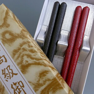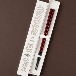 商品名 本漆乾漆夫婦箸・丸 黒(曙)、赤(根来) 黒箱入 商品特長 赤と黒ですが、中塗りがそれぞれ反対の色漆を塗っているので、ご使用の内にところどころ奥の色が現れてきます。箸先はブツ切りタイプです。...