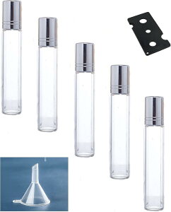 サンプルバイアル ステンレススチールボール付き エッセンシャルオイル 香水 アロマセラピー スキンケア用 漏斗4個 + オープナー1個 ? ポータブルトラベルサイズ: 容量は5ml (1/6オンス) で、旅行や日常使いに最適です...