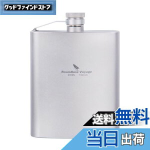 【商品詳細】:材質:チタン(スキットル本体)、ステンレス(漏斗)、サイズ(約):110×95mm、重量(約):79g、容量(約):200ml。 【セット内容】本体、漏斗(じょうご)、収納袋。